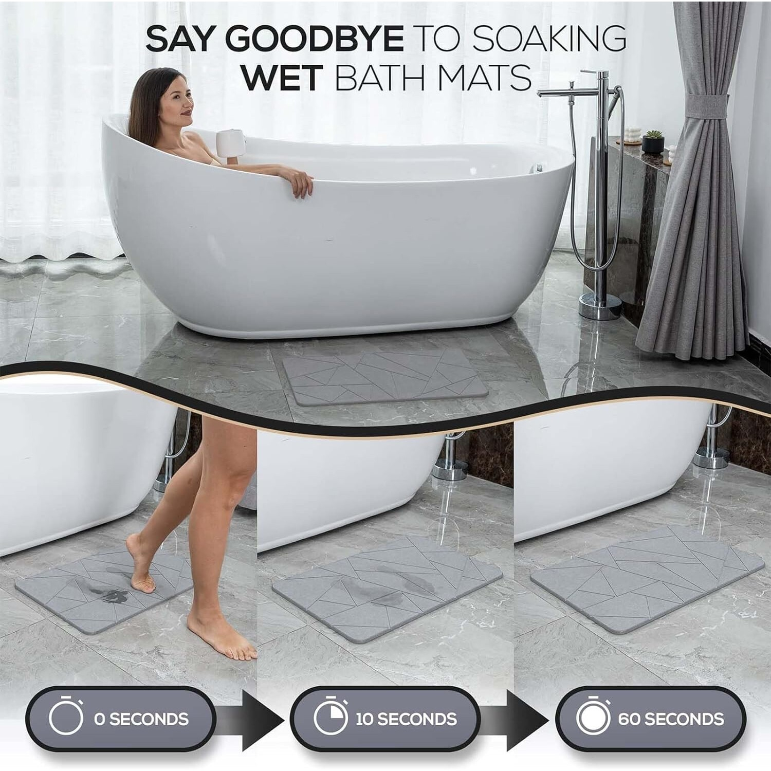 Covorasul de baie este fabricat din pamant de diatomee, care este un material natural ultra-compact. Poate absorbi rapid apa si se usuca in cateva minute, ajuta la mentinerea podelei uscate si curate.