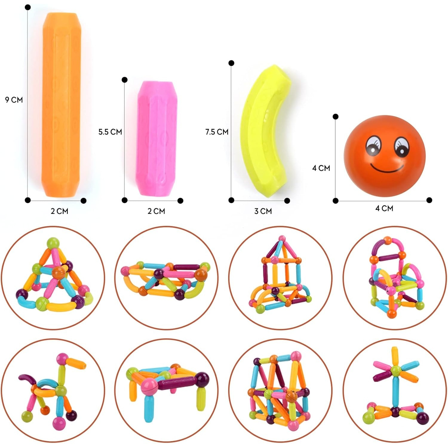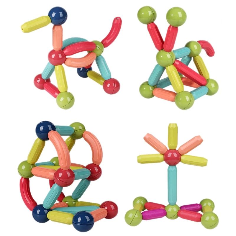 Setul de constructii magnetice combina betisoare magnetice, bile metalice si piese variate pentru a oferi copiilor o experienta unica de joaca educativa. Fie ca aleg sa construiasca forme 2D, structuri 3D spectaculoase, trasee cu bile sau labirinturi amuzante, cei mici vor descoperi cum imaginatia prinde viata piesa cu piesa.