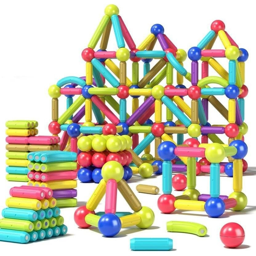 Set Educativ Magnetic cu Bete si Bile, 128 de Piese pentru Constructii 2D si 3D, Joynix