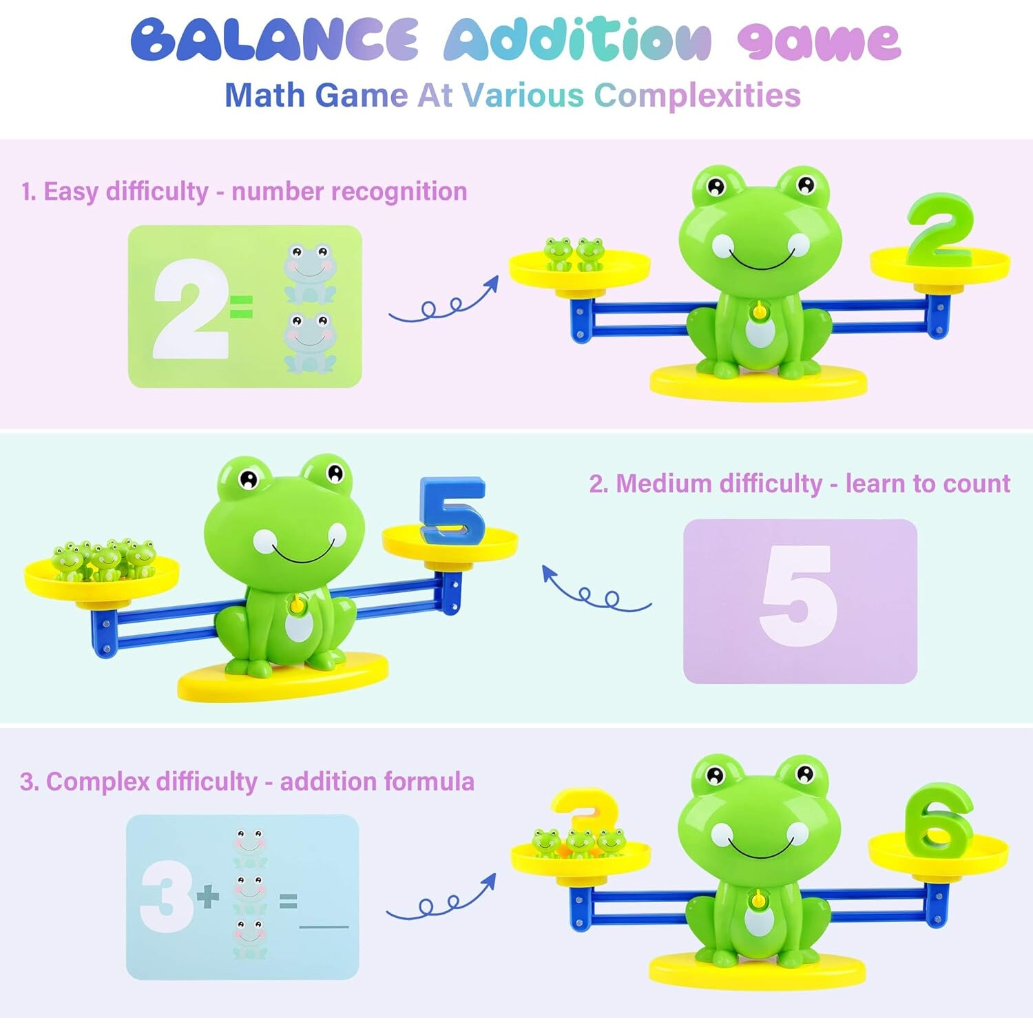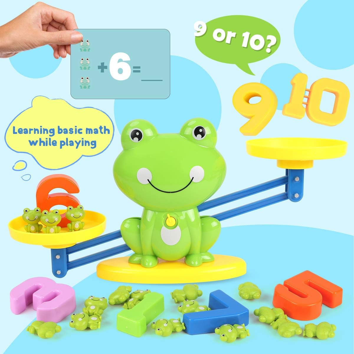• Cartonase cu Ecuatii Incluse: Setul nostru vine cu o varietate de carti cu ecuatii matematice, oferind oportunitati nesfarsite pentru practica si descoperire. Copiii pot rezolva probleme prin balansarea broscutelor, facand conceptele matematice tangibile si relevante.