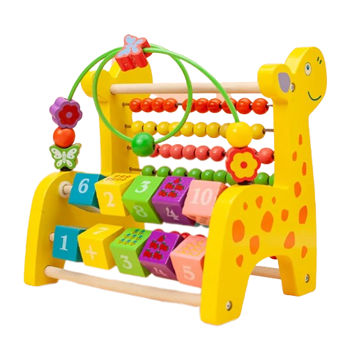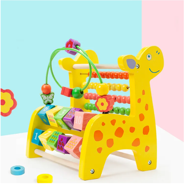 Jucaria are un abac cu bile colorate pe partea frontala, partile laterale avand forma de Girafa.