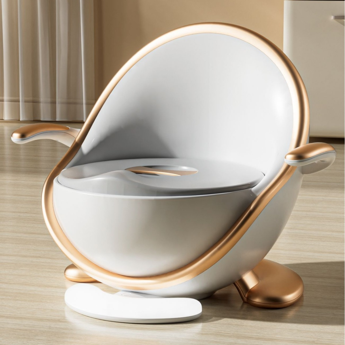 Olita noastra de antrenament cu design ergonomic ajuta micutii sa treaca cu usurinta de la scutec la toaleta.