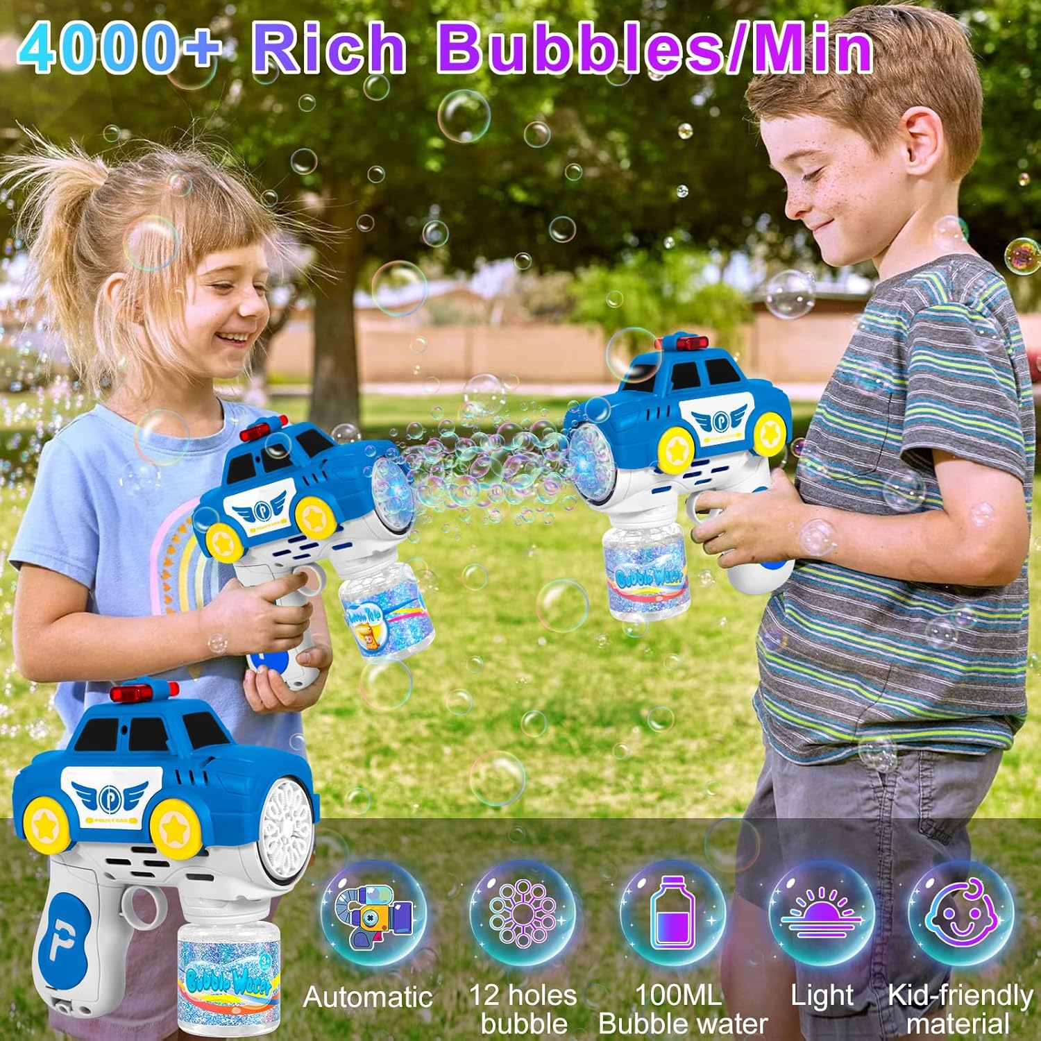 Pistol pentru Baloane de Sapun - BubbeDrive: Masina de Politie - cu Rezervor pentru Solutie, Explozie de Bule