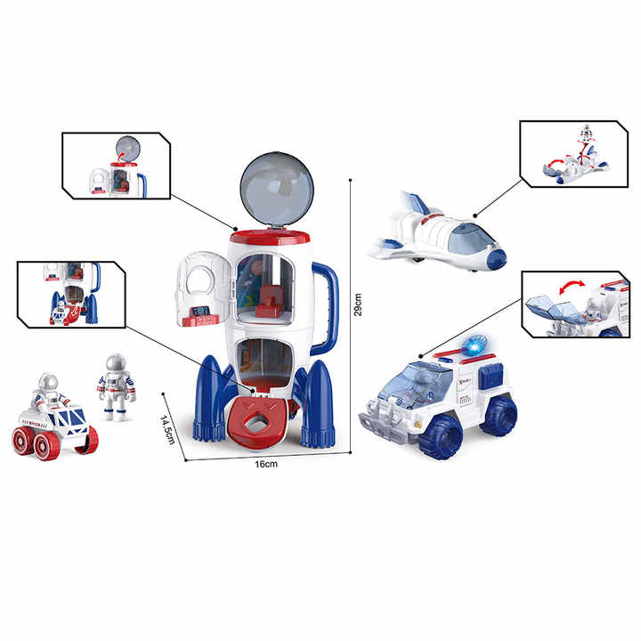 Set Cosmic de Explorare 5 in 1 cu Efecte Luminoase si Sonore, Racheta, Rover si Naveta Spatiala, 3 Astronauti