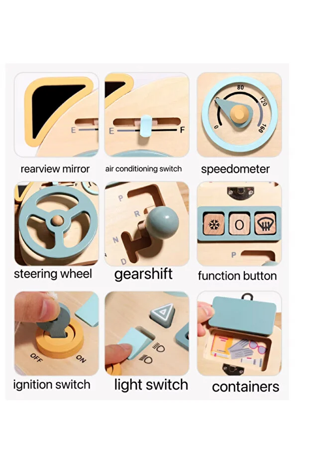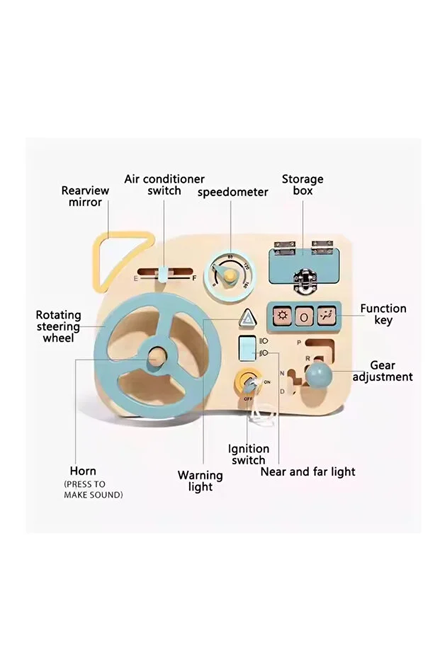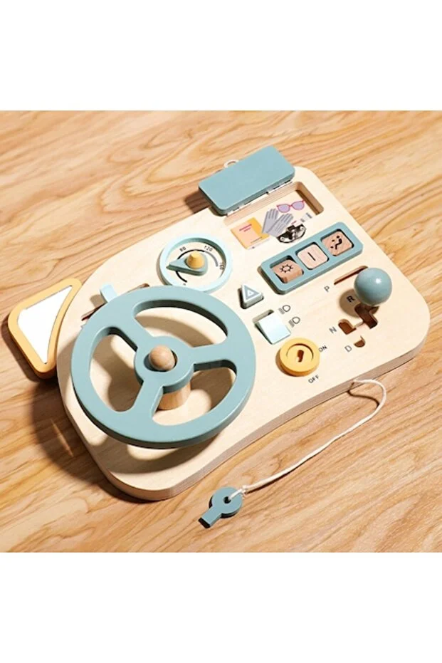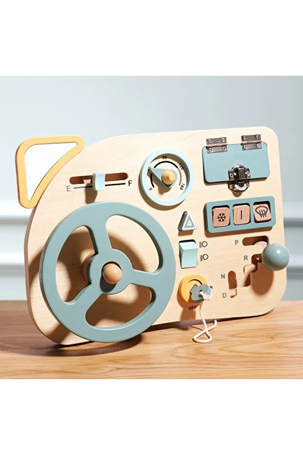 Transformă timpul de joacă într-o experiență educativă cu acest volan interactiv din lemn, special conceput pentru copii! Având un design inspirat din mașini, panoul de bord include un volan, schimbător de viteze, butoane, oglindă laterală, vitezometru și chiar o cheie de contact.